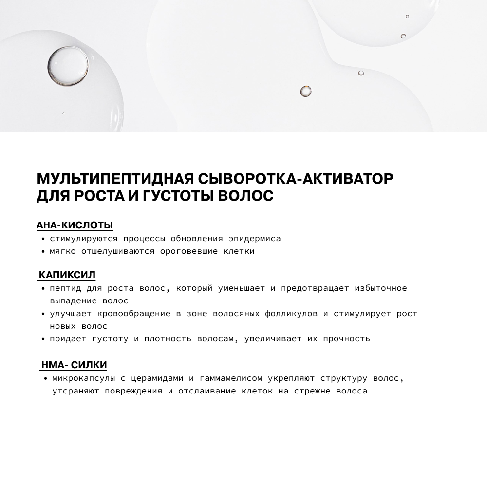 | Эффект | уплотнение волос / активация роста / придание объема / укрепление / придание блеска |