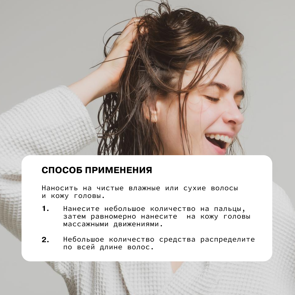 | Способ применения | наносить на чистые влажные или сухие волосы и кожу головы. Нанесение на кожу головы осуществлять массирующими движениями |