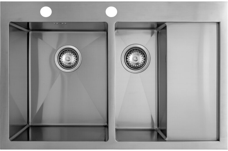Мойка Seaman Eco Marino SMB-7851DRS, два отверстия, вентиль-автомат, матовая нержавеющая сталь, две чаши крыло, основная чаша слева