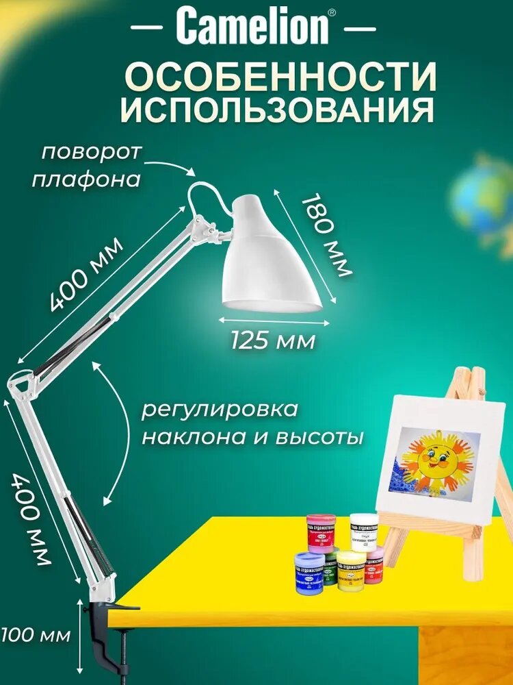 Светильник на струбцине Светильник настольный с металлической струбциной Camelion KD-335 белый