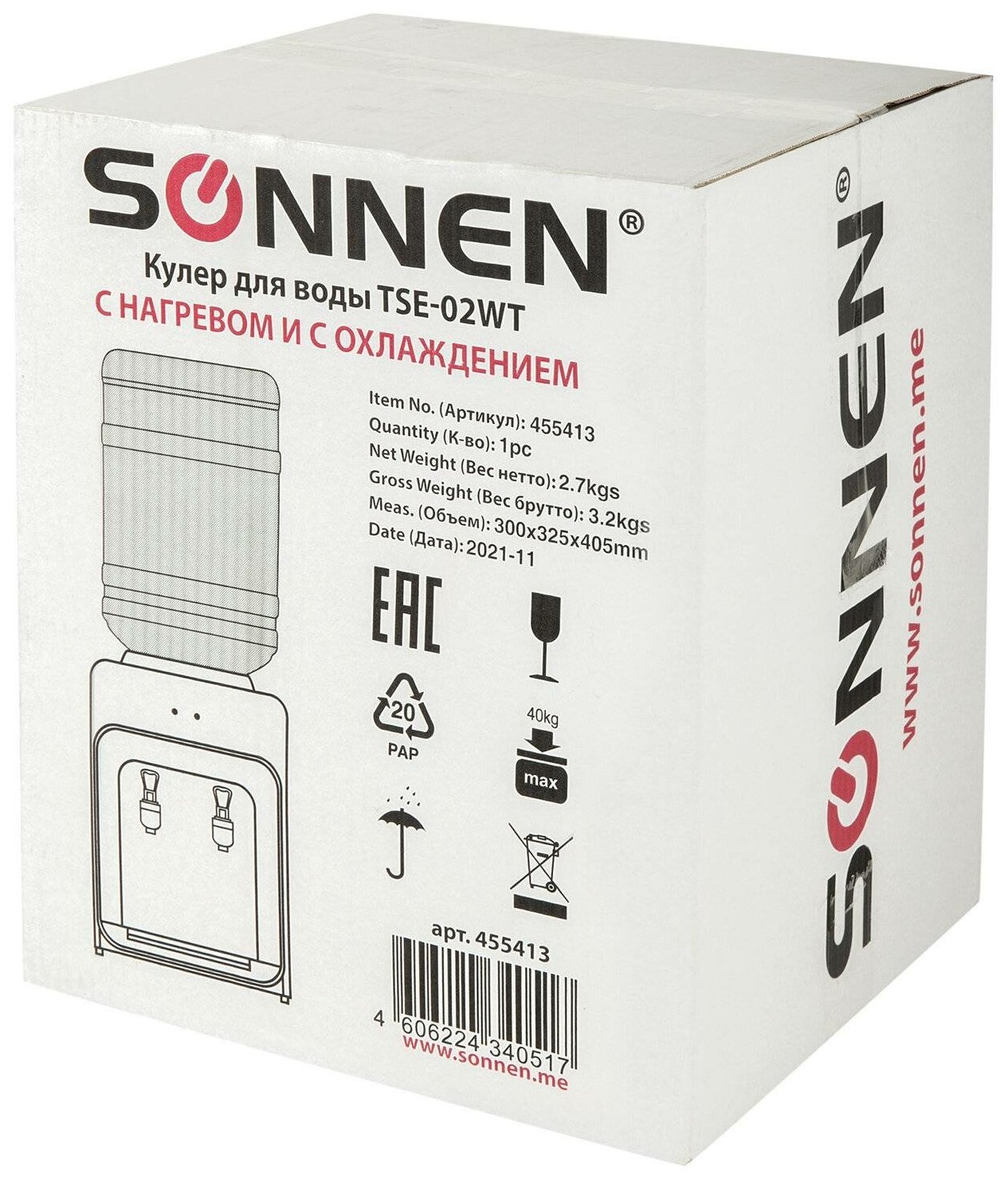 Кулер для воды SONNEN TSE-02WTнастольныйНАГРЕВ/охлаждение ЭЛЕКТРОННОЕ2 кранабелый455413