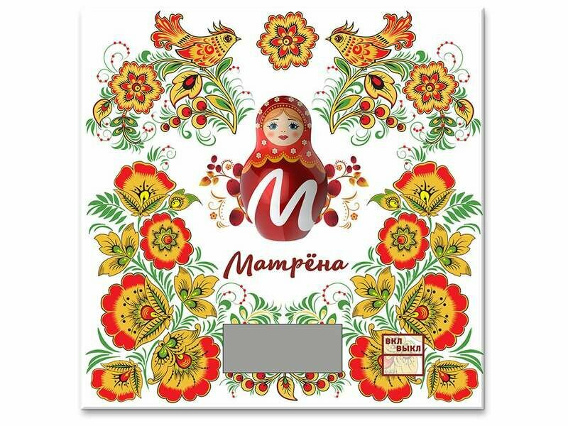 Весы кухонные Матрёна МА-033 005987 Матрешка электронные, стекло, белый с рисунком, нагрузка до 7кг / для взвешивания продуктов / техника для кухни