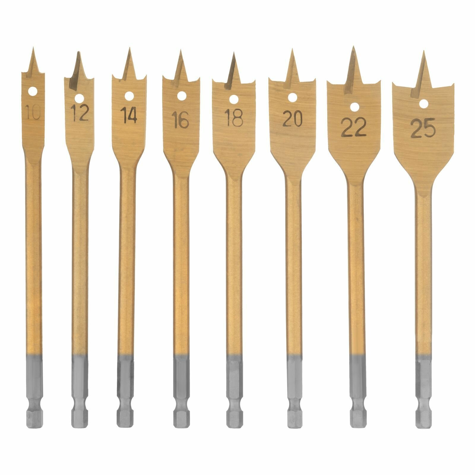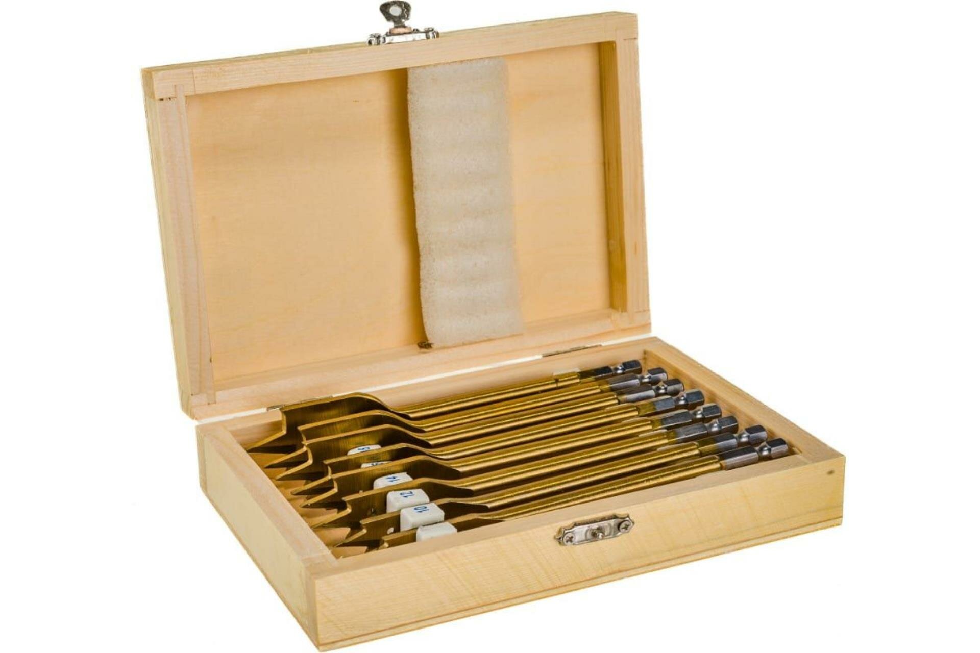 Купить Набор сверл перовых по дереву, 10-12-14-16-18-20-22-25 мм, 8 шт, деревянный кейс Matrix 70441
