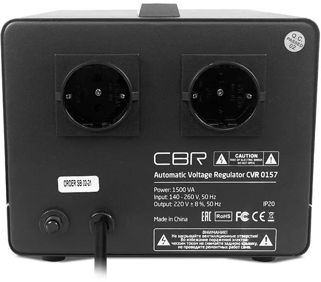 CBR Стабилизатор напряжения CVR 0207, 2000 ВА/1200 Вт, диапазон вход. напряж. 140260 В, точность ст