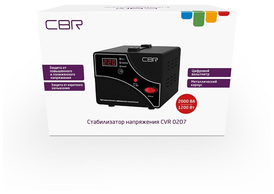 Cbr сбр стабилизаторы напряжения Стабилизатор напряжения CVR 0207, 2000 ВА 1200 Вт, диапазон вход. напряж. 140–260 В, точность стабилизации 8%,
