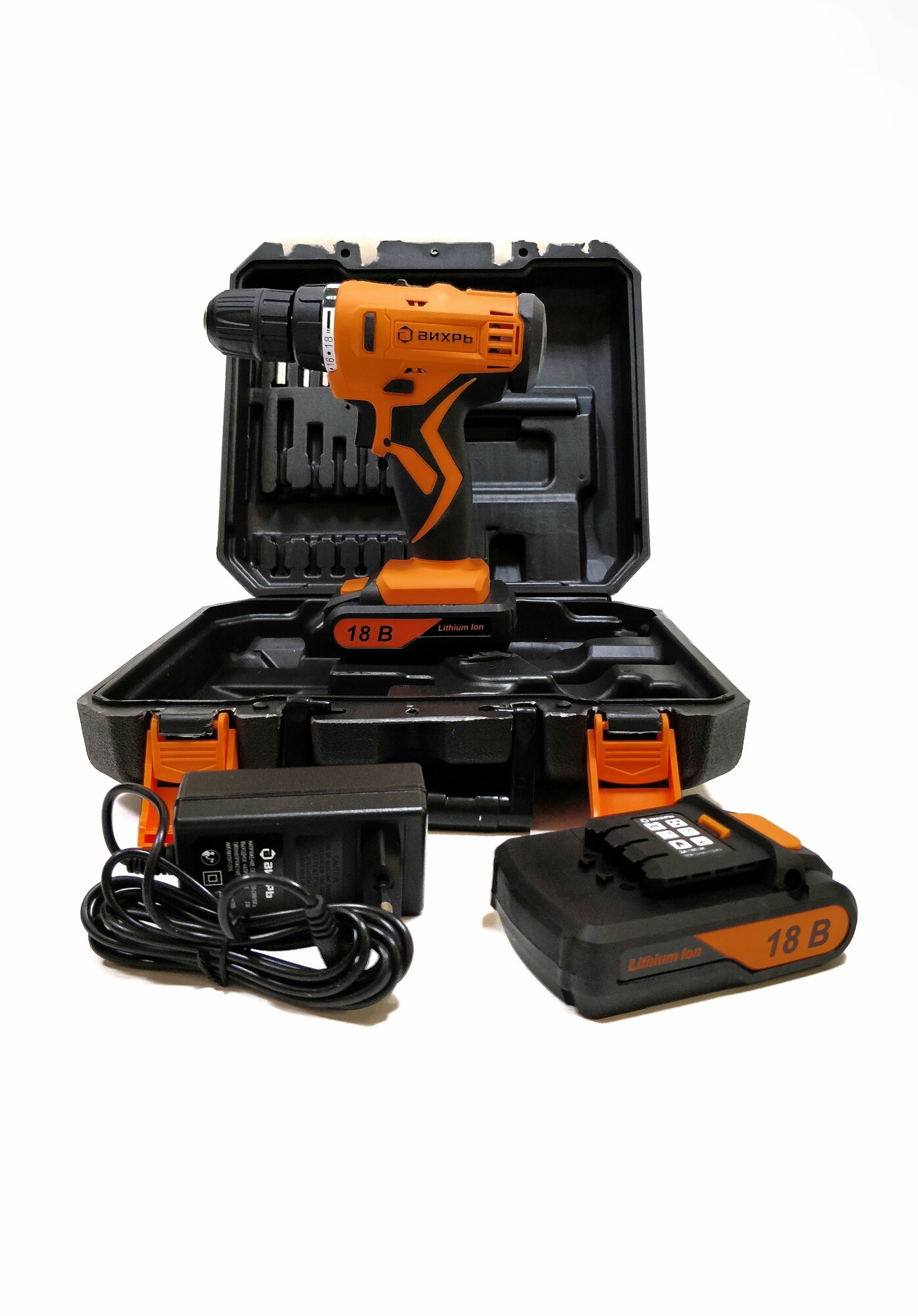 Дрель-шуруповерт Вихрь безударная, аккумуляторная, с двумя аккумуляторами 2 Ач, 18 В