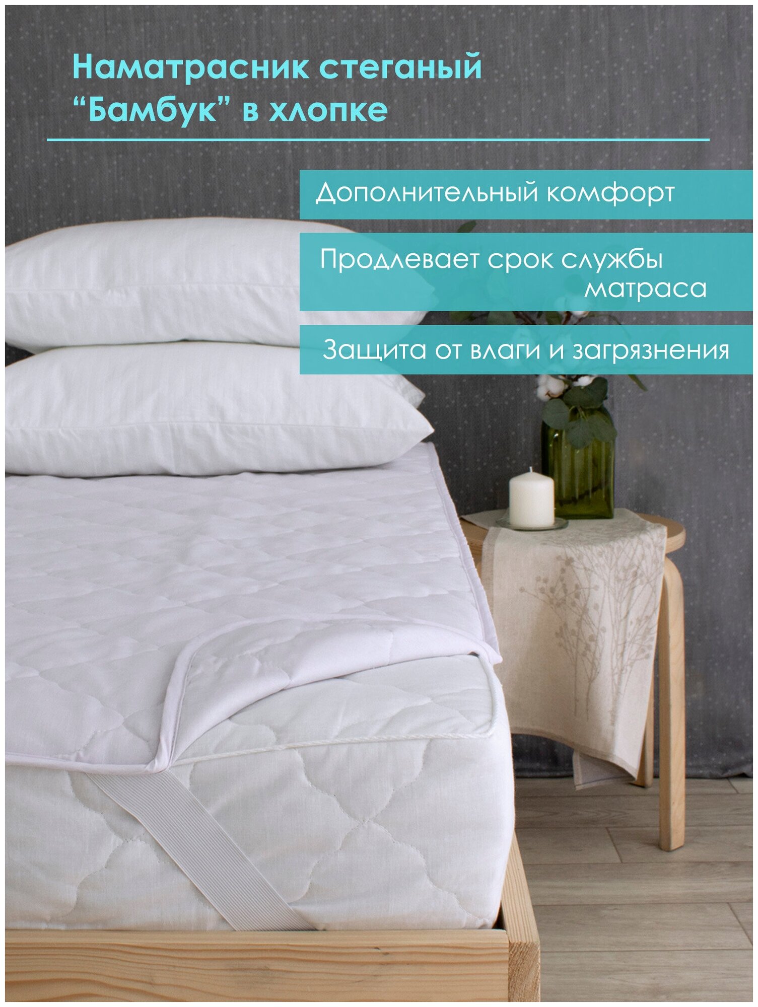 Купить Наматрасник стеганый 160х200 Хлопковый Мир бамбук в хлопке