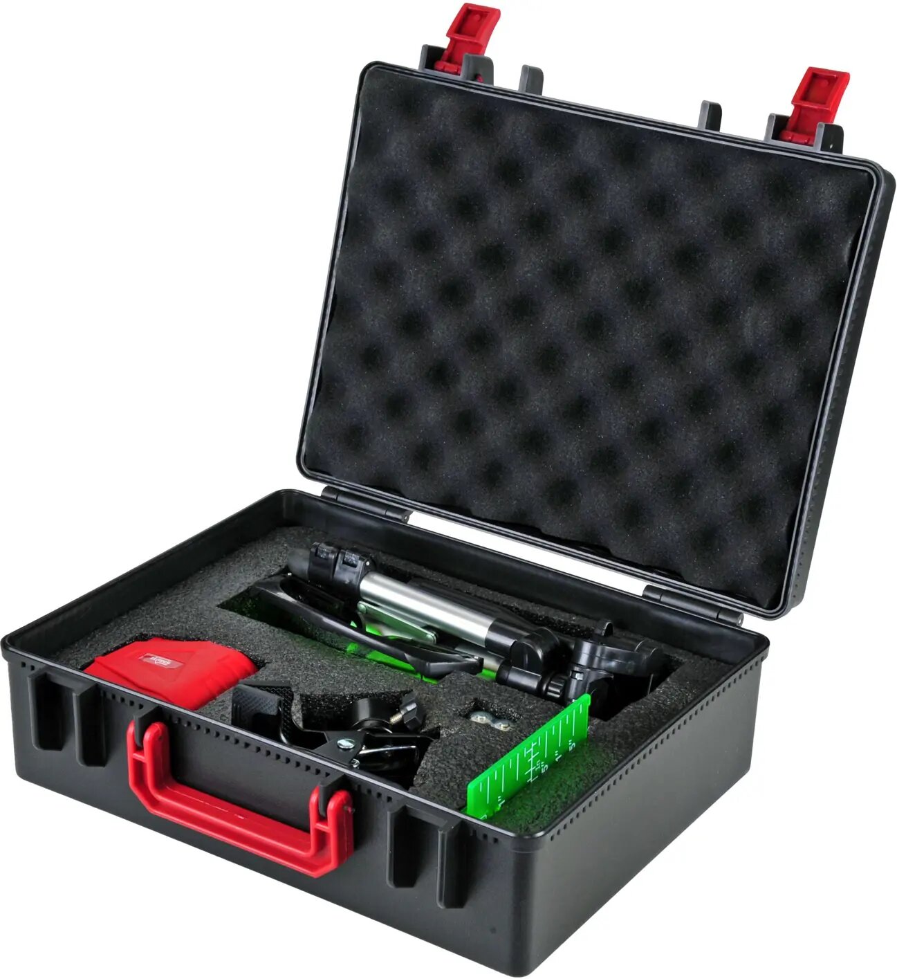Лазерный нивелир Elitech ЛН 3К-ЗЕЛ Промо + набор кейс (зеленый) до 20м ± 0,3 мм/м гор/верт (Е0306.015.00)
