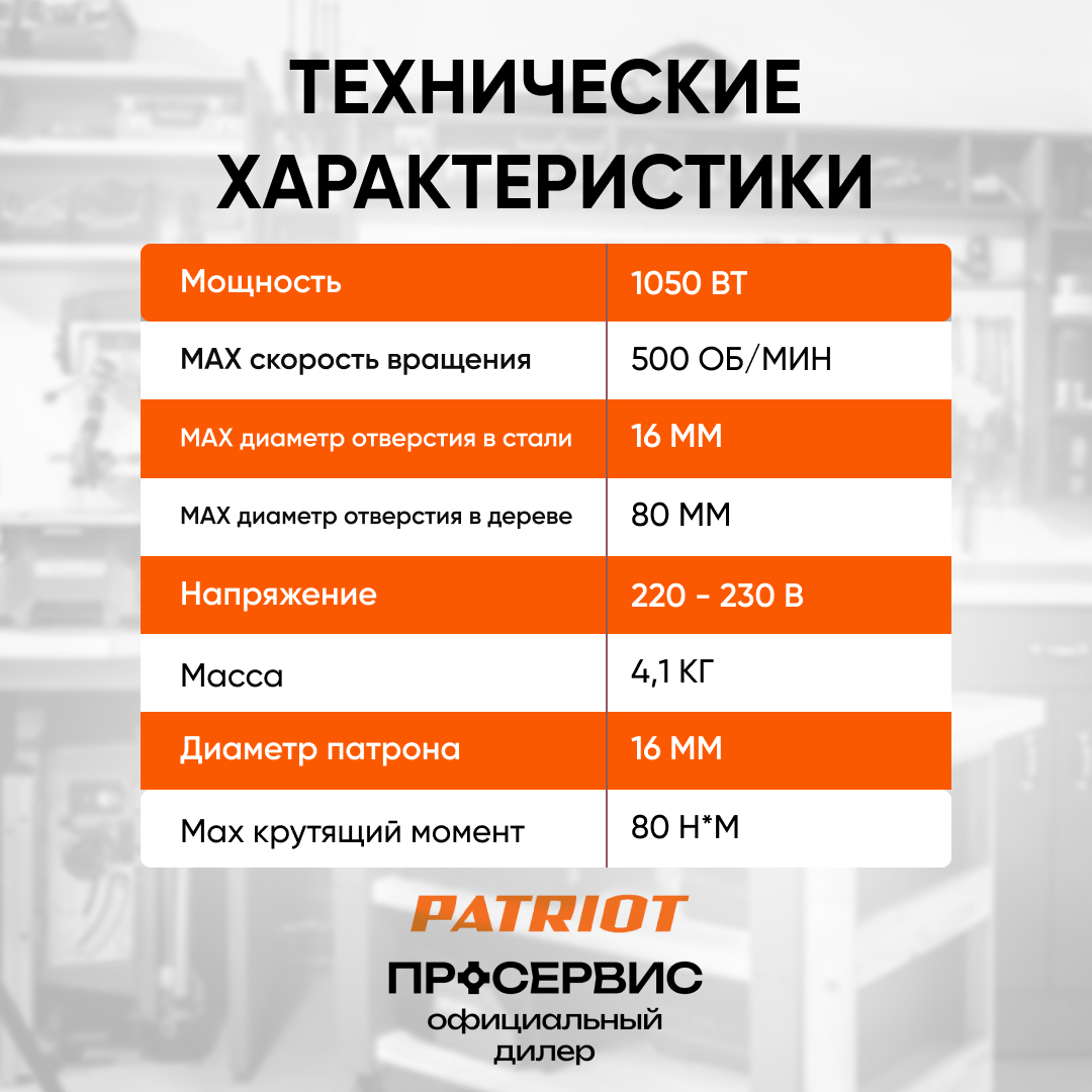 Дрель-миксер электрическая PATRIOT DM 088 (120301088), 1050 Вт, металлический редуктор, патрон 16 мм
