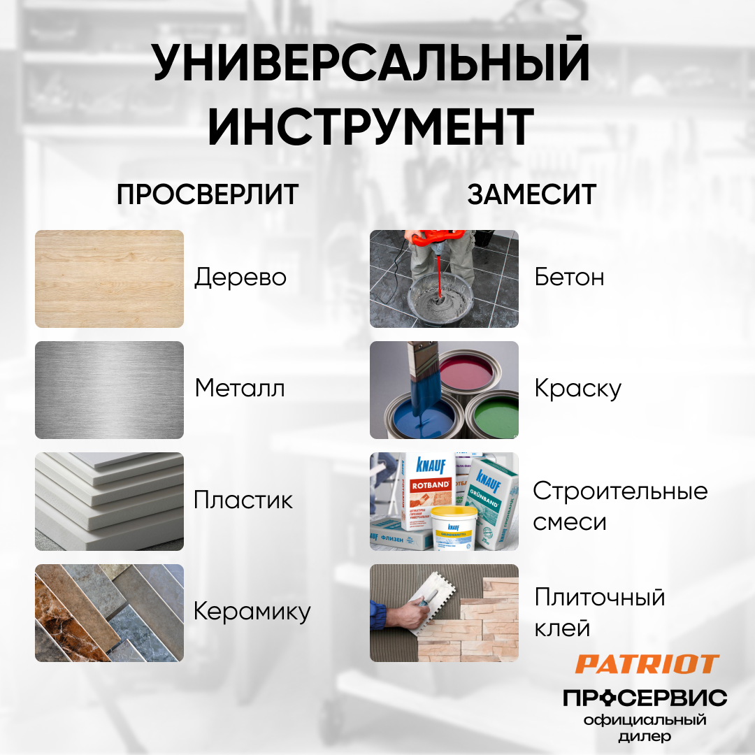 Дрель миксер электрическая PATRIOT DM 100 /1050Вт, металлический редуктор, венчик