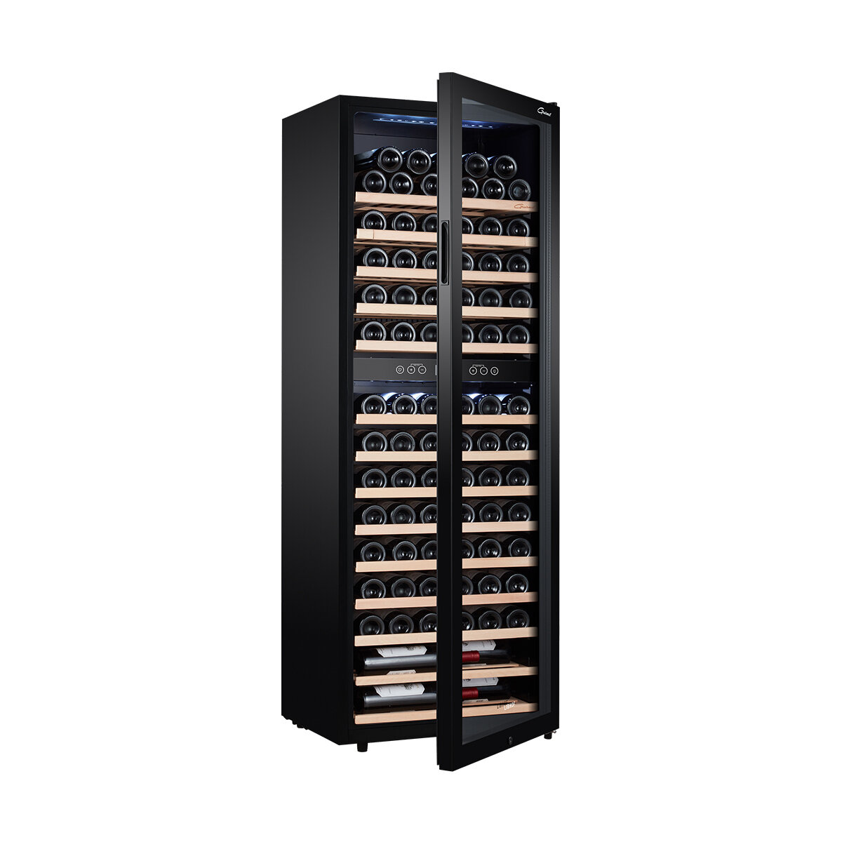 | Плюсы: | Бесшумная работа компрессора. Высокая вместительность. Одновременно можно хранить разные сорта вина и шампанского. |