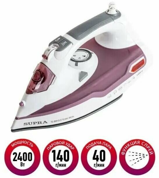 Утюг Supra IS-2412 сиреневый/белый интересное: