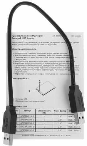 Жесткий диск внешний Apacer AP1TBAC236U-1