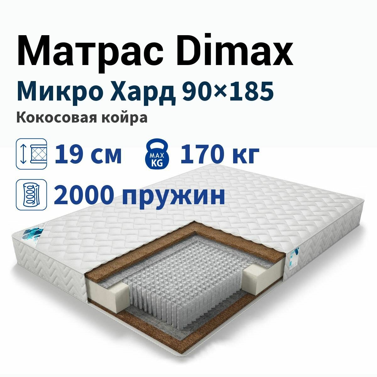 Матрас Dimax Микро Хард, 90x200 см, пружинный