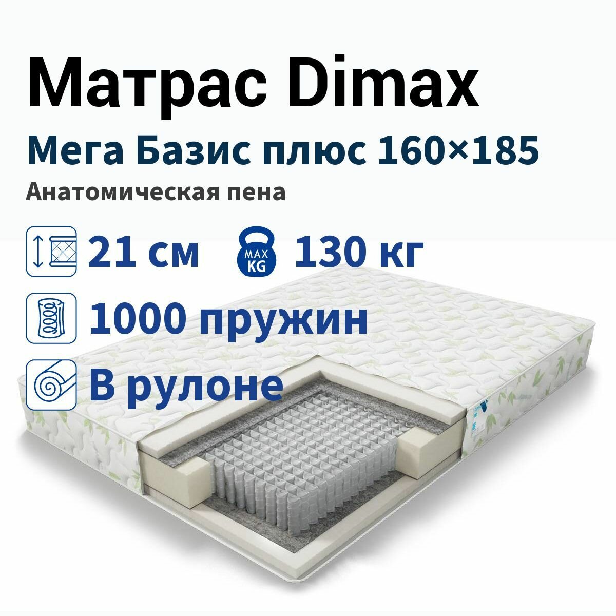 Ниже Вы можете прочитать отзывы на Матрас Dimax Мега Базис Плюс 160х185, ознакомится с подробными характеристиками, посмотреть интересные обзоры и фотографии на Матрас Dimax Мега Базис Плюс 160х185.