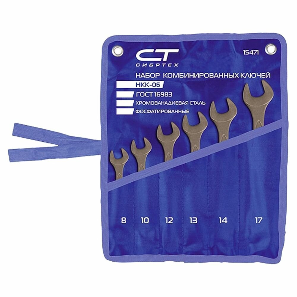 Сибртех Набор ключей комбинированных,6 - 22 мм,12 шт., CrV,фосфатированные,ГОСТ 16983//15477