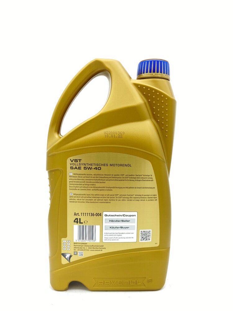 Ниже Вы можете прочитать отзывы на Масло Моторное 5W40 Ravenol 4Л Син. Vst Sn/Cf A3/B4 1111136-004-01-999 Ravenol арт. 4014835790193, ознакомится с подробными характеристиками, посмотреть интересные обзоры и фотографии на Масло Моторное 5W40 Ravenol 4Л Син. Vst Sn/Cf A3/B4 1111136-004-01-999 Ravenol арт. 4014835790193.
