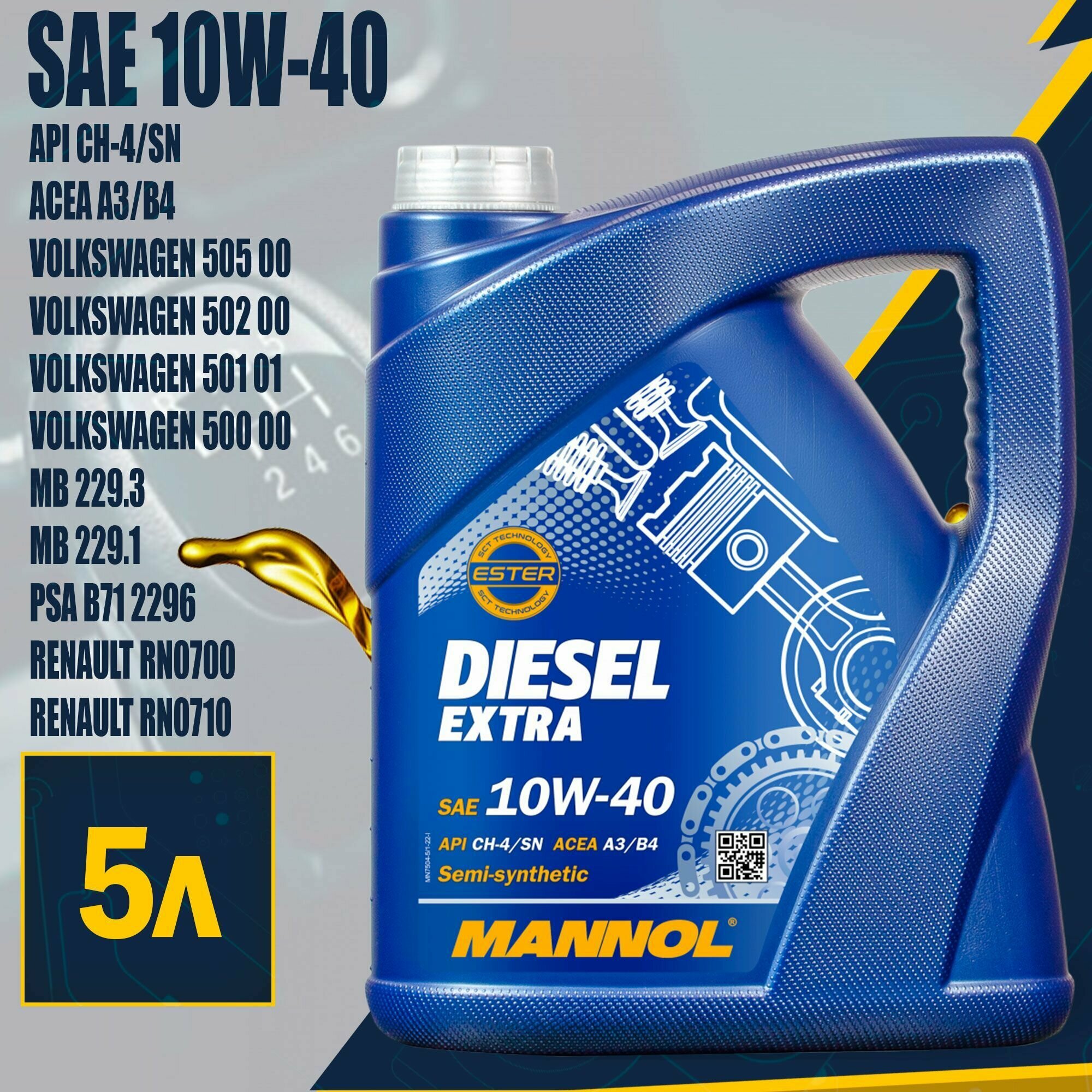 Масло Mannol Diesel Extra 10W40 п/синт. 7504 (5 л) API CH-4/SL, ACEA B4/A3, VW 505.0/502.00