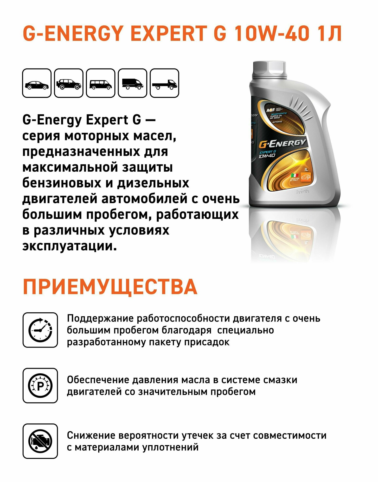 Купить Масло Моторное G-Energy Expert G 10W40 (1Л.) 253140266 Масло Моторное G-Energy Expert G 10W40 (1Л.) 253140266 G-Energy арт. 1...