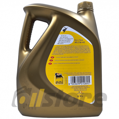 ENI ENI5W40ISINTMS4 ENI Масло моторное синтетическое 4л - для легковых автомобилей API SN PLUS, ACEA С3,