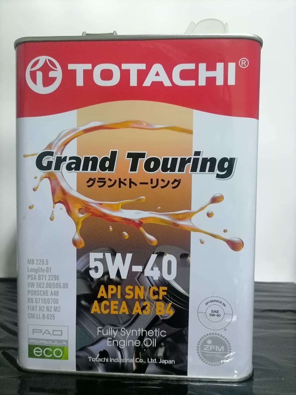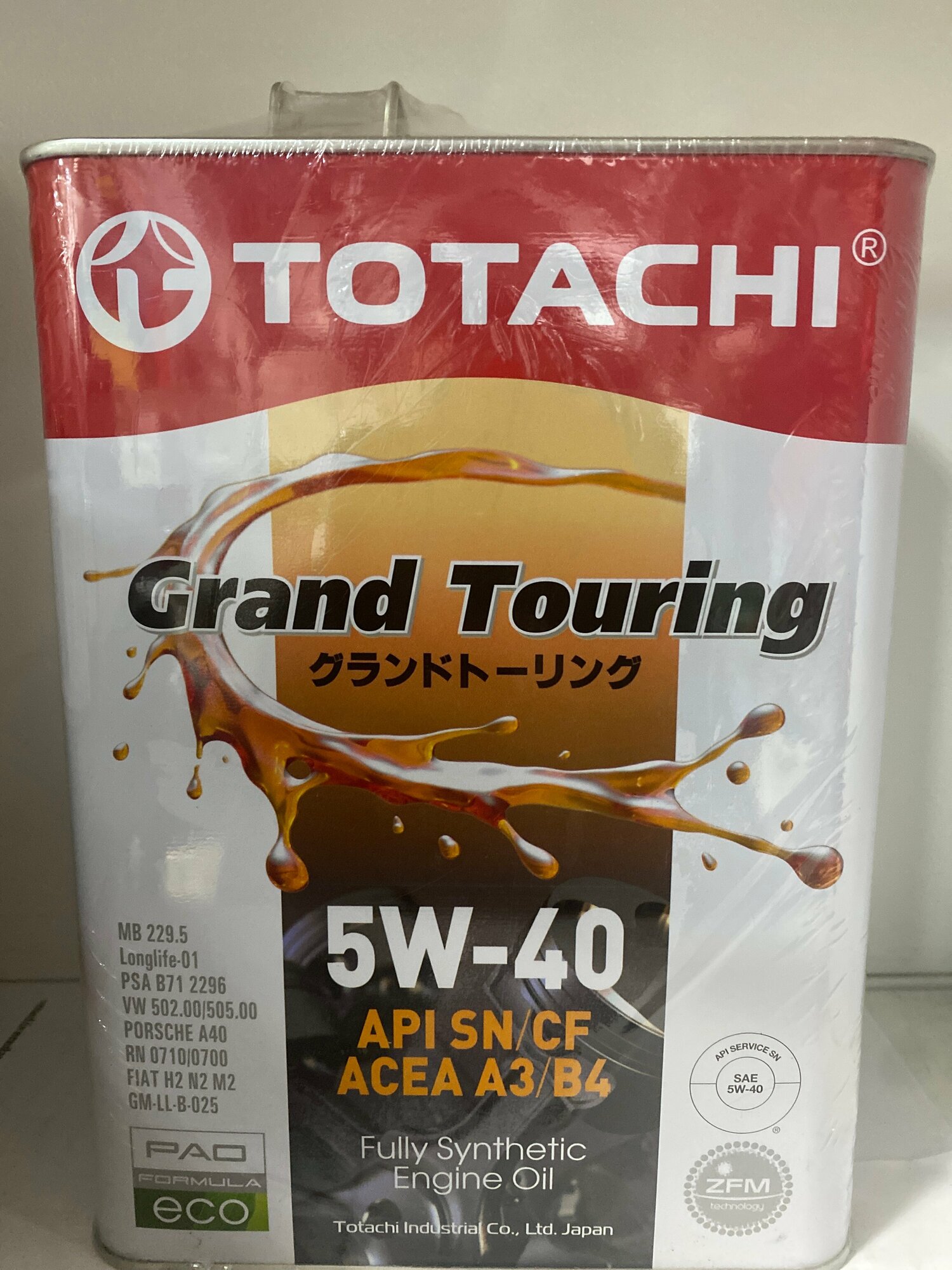 Масло моторное Totachi Grand Touring 5w40 синтетическое, API SN/CF, ACEA A3/B4, универсальное, 4л, арт. 4562374690844/11904