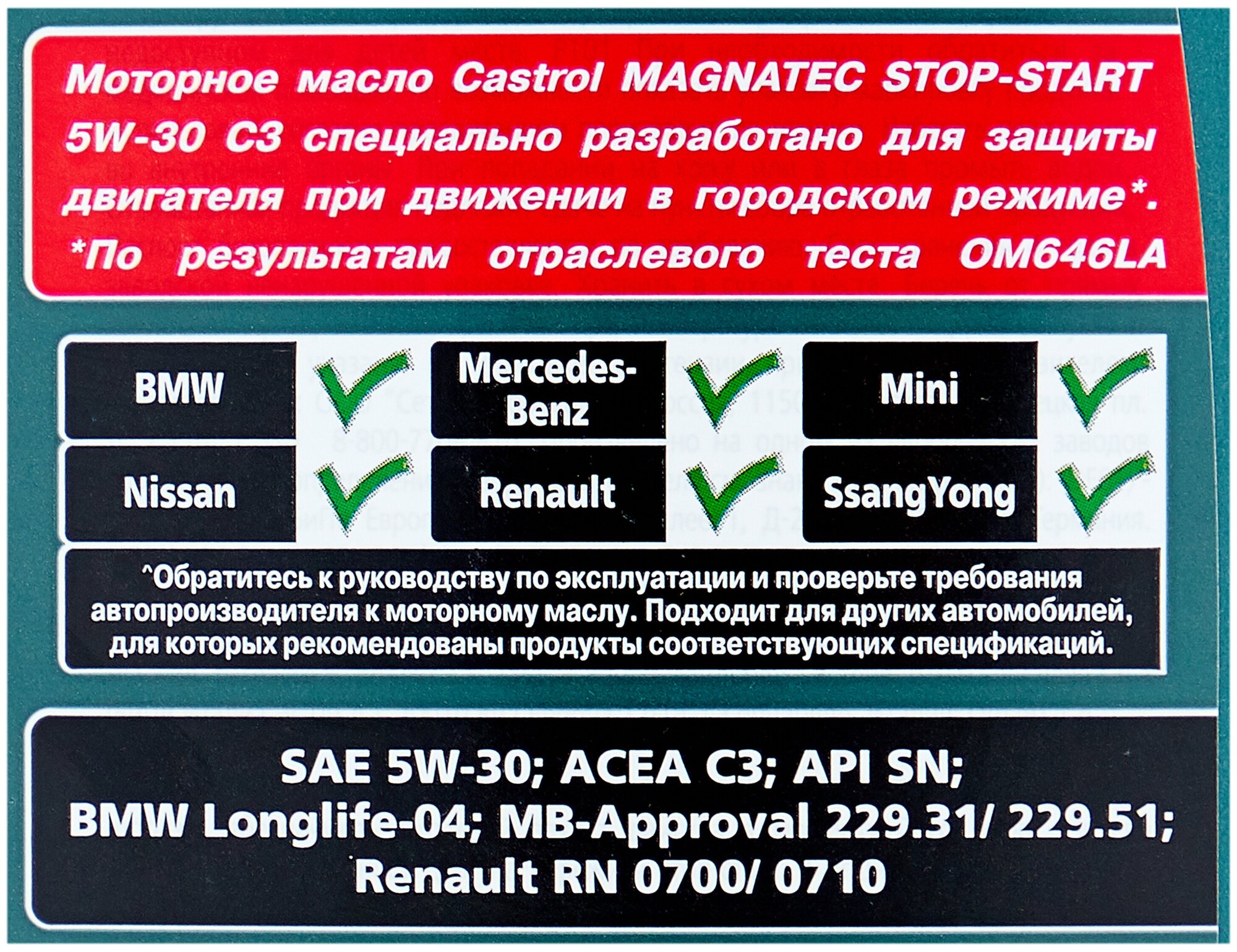 СохранитьCASTROL 15C94D Масло моторное Magnatec Stop-Start 5W-30 A3/B4 5л интересное: