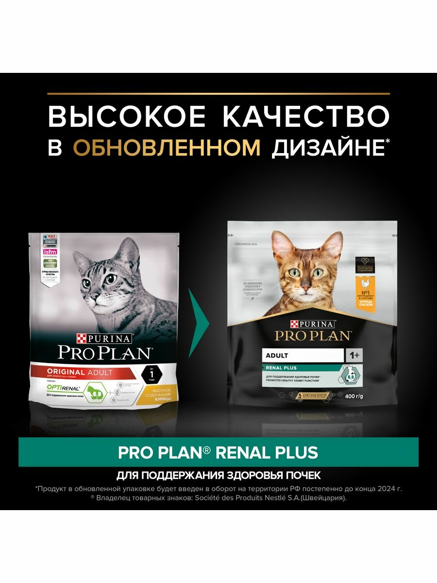 Сухой корм PRO PLAN® для взрослых кошек для поддержания здоровья почек, с высоким содержанием курицы, RENAL PLUS,3 кг