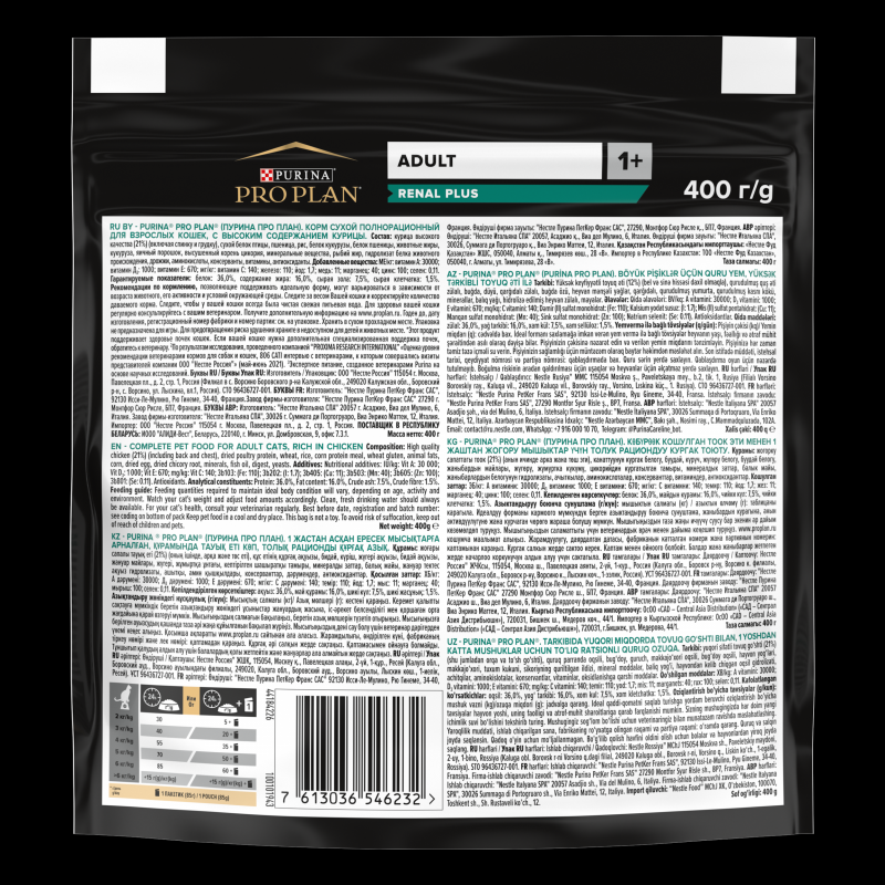 PRO PLAN CAT ADULT RENAL PLUS CHICKEN для взрослых кошек для поддержания здоровья почек с курицей (0,4 кг х 8 шт)