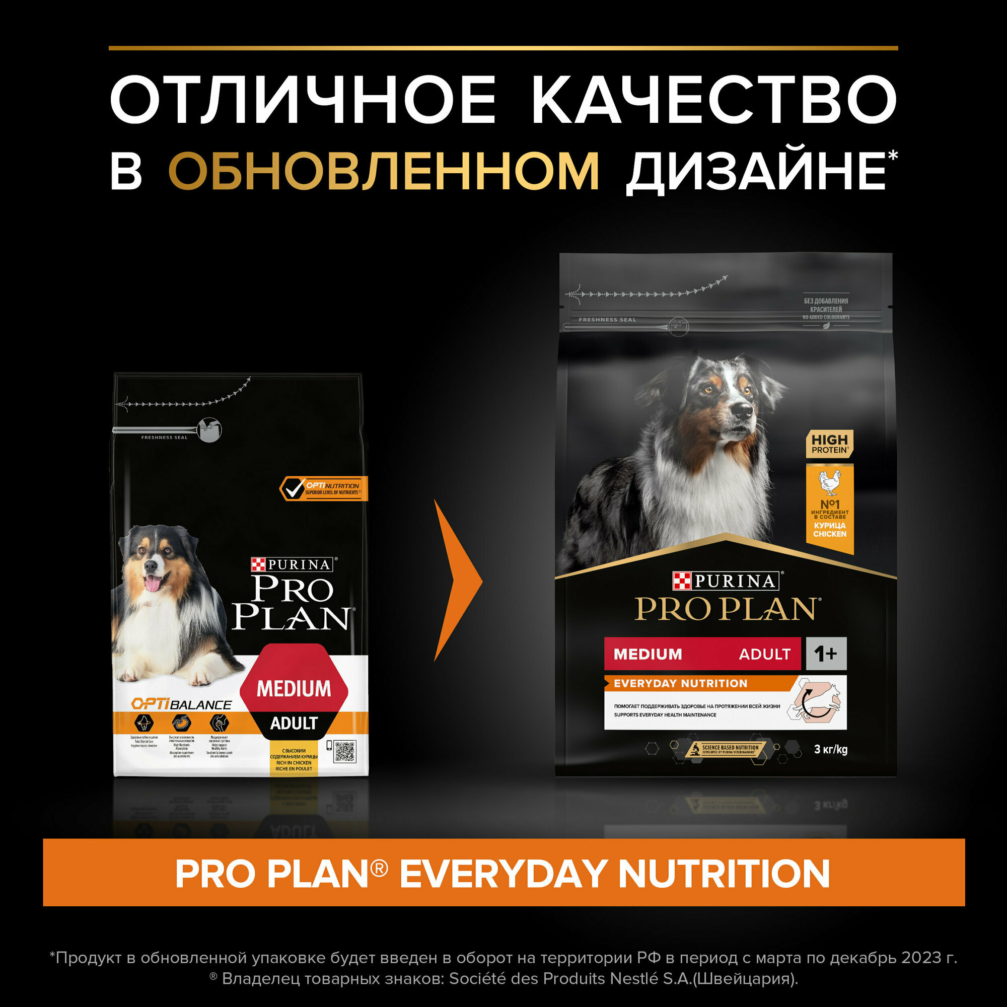 Сухой корм Pro Plan для взрослых собак средних пород, с высоким содержанием курицы, Пакет, 3 кг