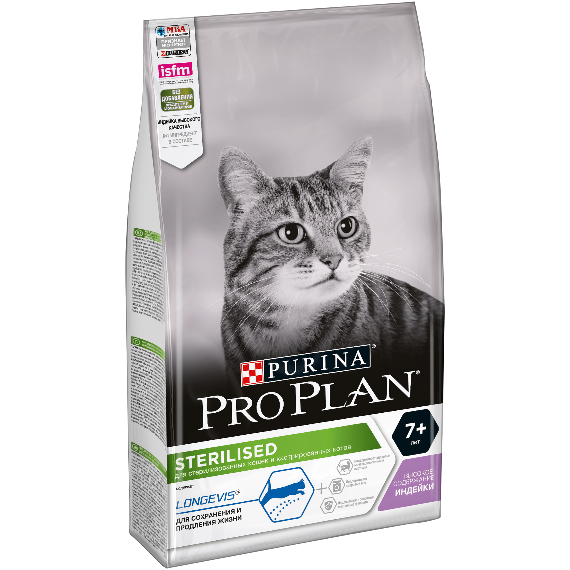 Purina Pro Plan - Сухой корм для пожилых кастрированных котов и стерилизованных кошек с индейкой (sterilized 7+) 3кг