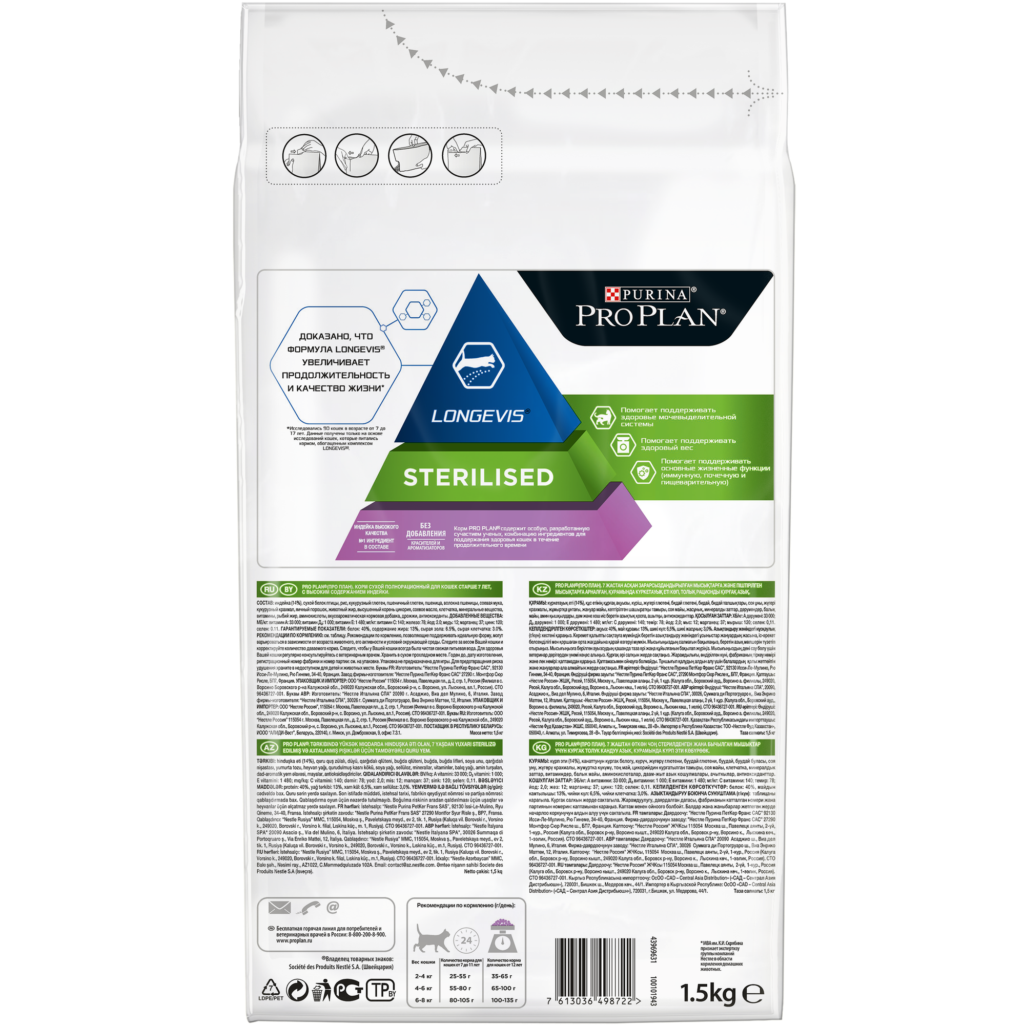 Сухой корм для стерилизованных пожилых кошек Pro Plan Sterilised Longevis 7+ , с индейкой 1,5 кг