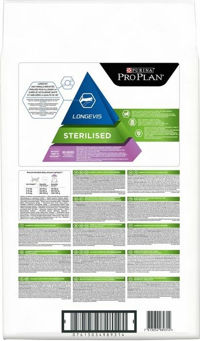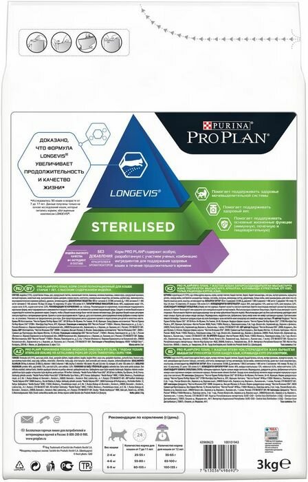 Корм для кошек сухой Pro Plan / Про План Sterilised longevis для стерилизованных пожилых животных старше 7 лет гранулы с индейкой 3кг / кошачья еда
