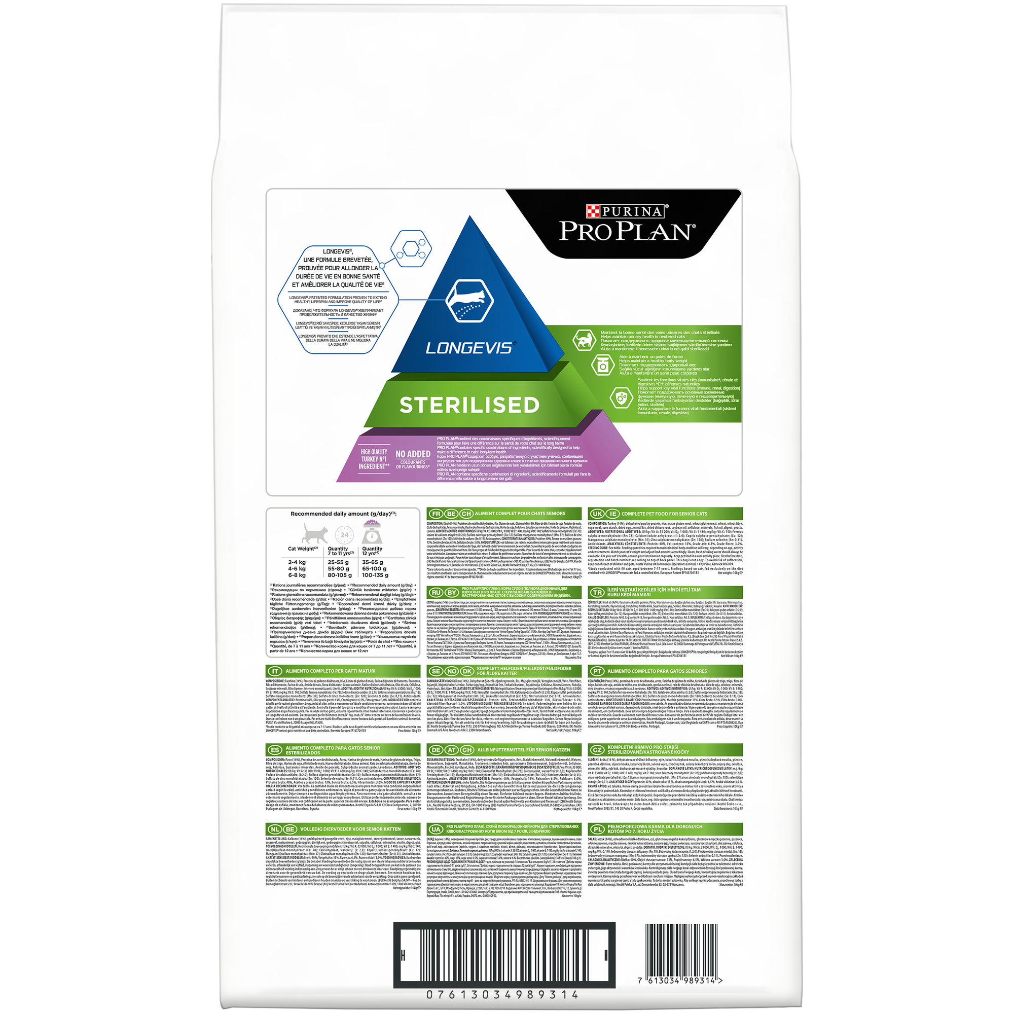 PRO PLAN CAT SENIOR 7+ STERILISED LONGEVIS для пожилых кастрированных котов и стерилизованных кошек старше 7 лет с индейкой (10 кг)