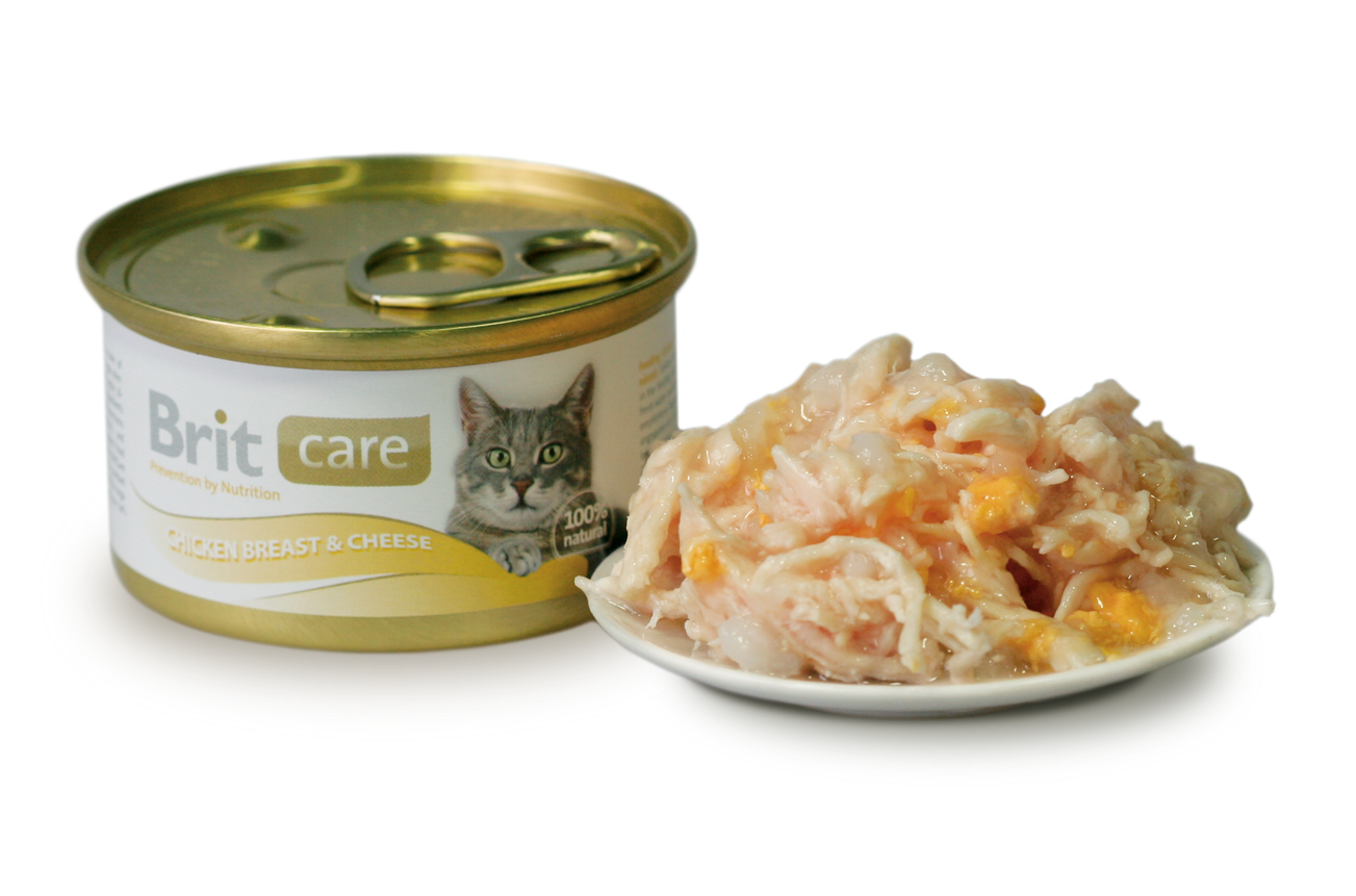 Корм для кошек BRIT Care Куриная грудка с сыром банка 80г (упаковка - 24 шт)