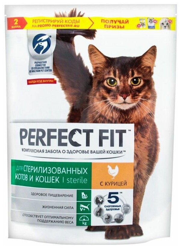 Купить Сухой корм Perfect Fit для кастрированных котов и стерилизованных кошек курица sterile 650г
