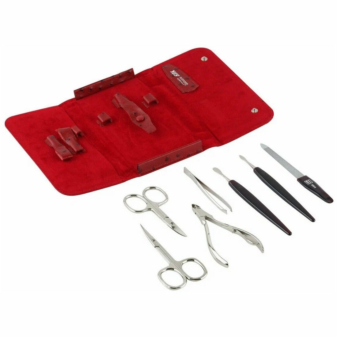 Маникюрный набор Yes, 7 предметов, нержавеющая сталь/никелированное покрытие, футляр: натуральная кожа, цвет красный (9270GAR)