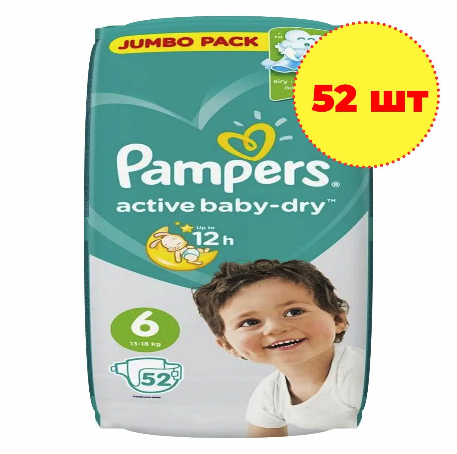 Подгузники Pampers Active Baby-Dry, 13-18 кг, размер 6, 52 шт интересное: