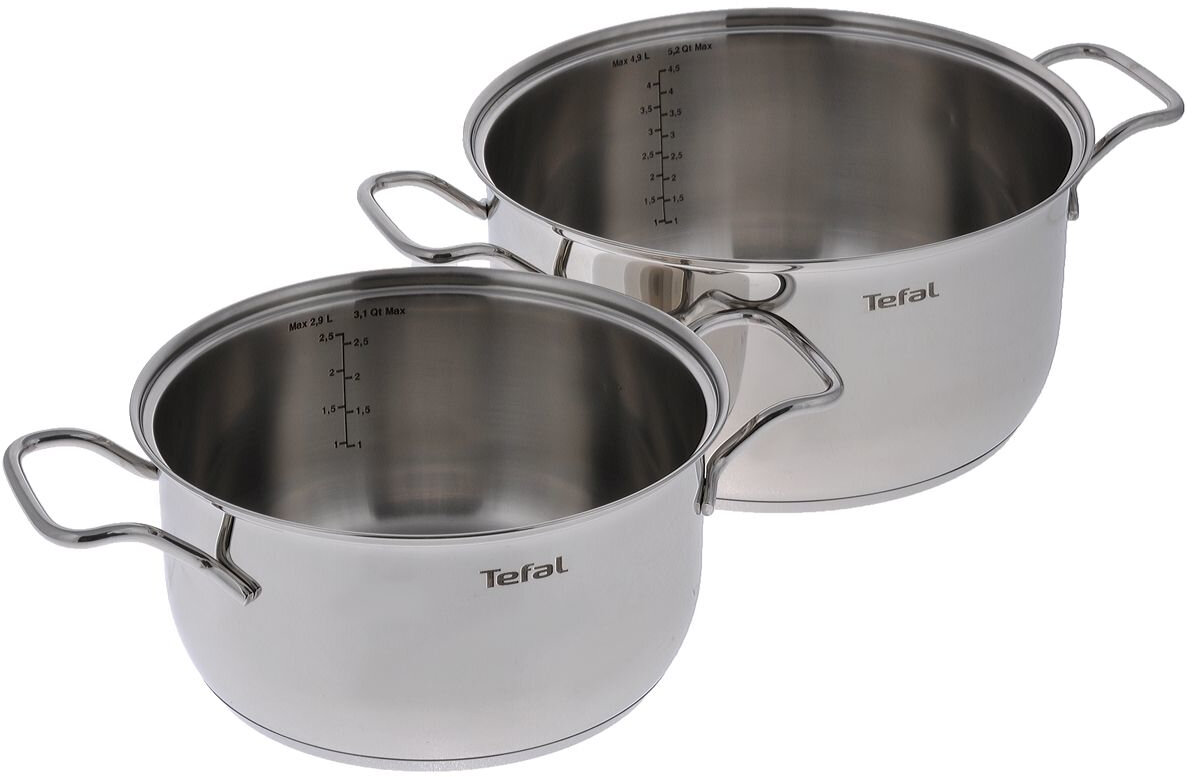 Набор посуды TEFAL INTUITION из нержавеющей стали 6 предметов : Кастрюля 20/24 с крышками, ковш 16 с крышкой Объем 2,9/4,9/1,3л