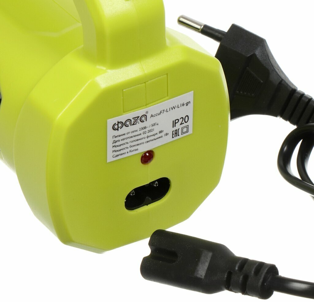 Купить Фонарь ручной, встроенный аккумулятор, ФАZА, AccuF7-L1W/L16, зарядка от сети 220 В, пластик, зеленый, 5014817