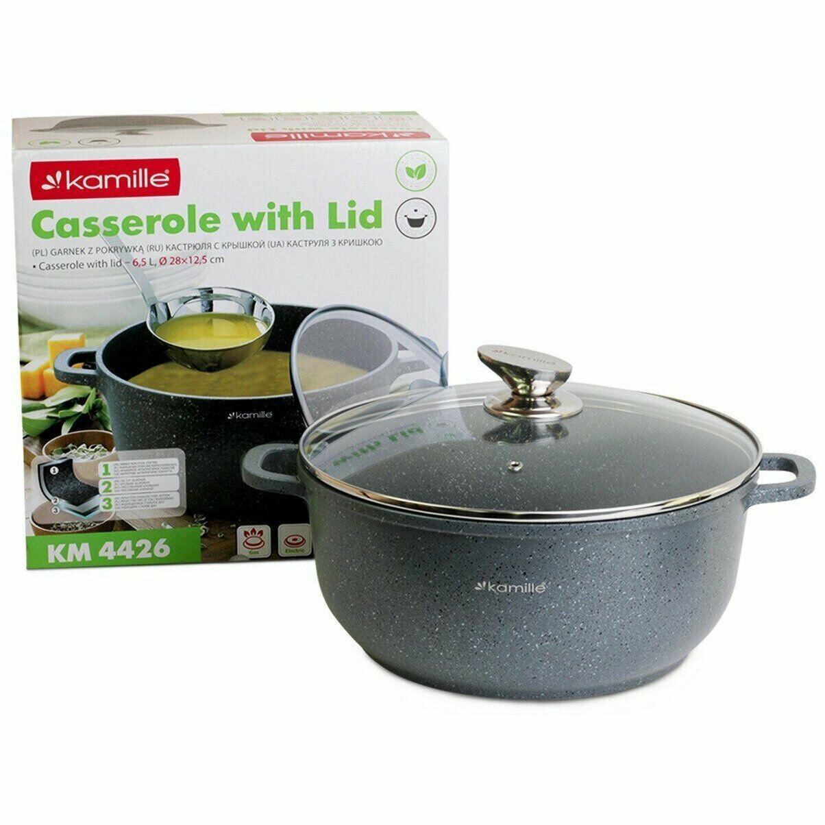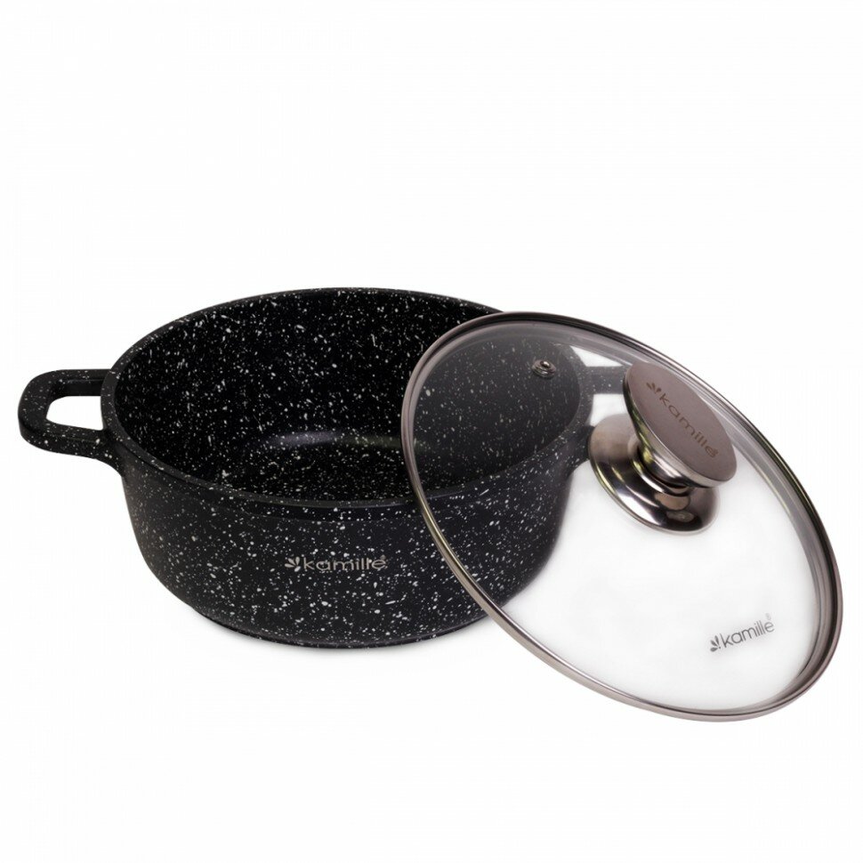 Кастрюля 2,3 л. из литого алюминия с мраморным покрытием Kamille КМ-4404 (20х8,5 см) черный (2,3 л. / черный) интересное: