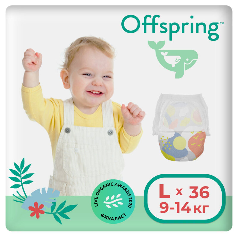 Трусики-подгузники Offspring расцветка Тропики L (9-14 кг) 36 шт