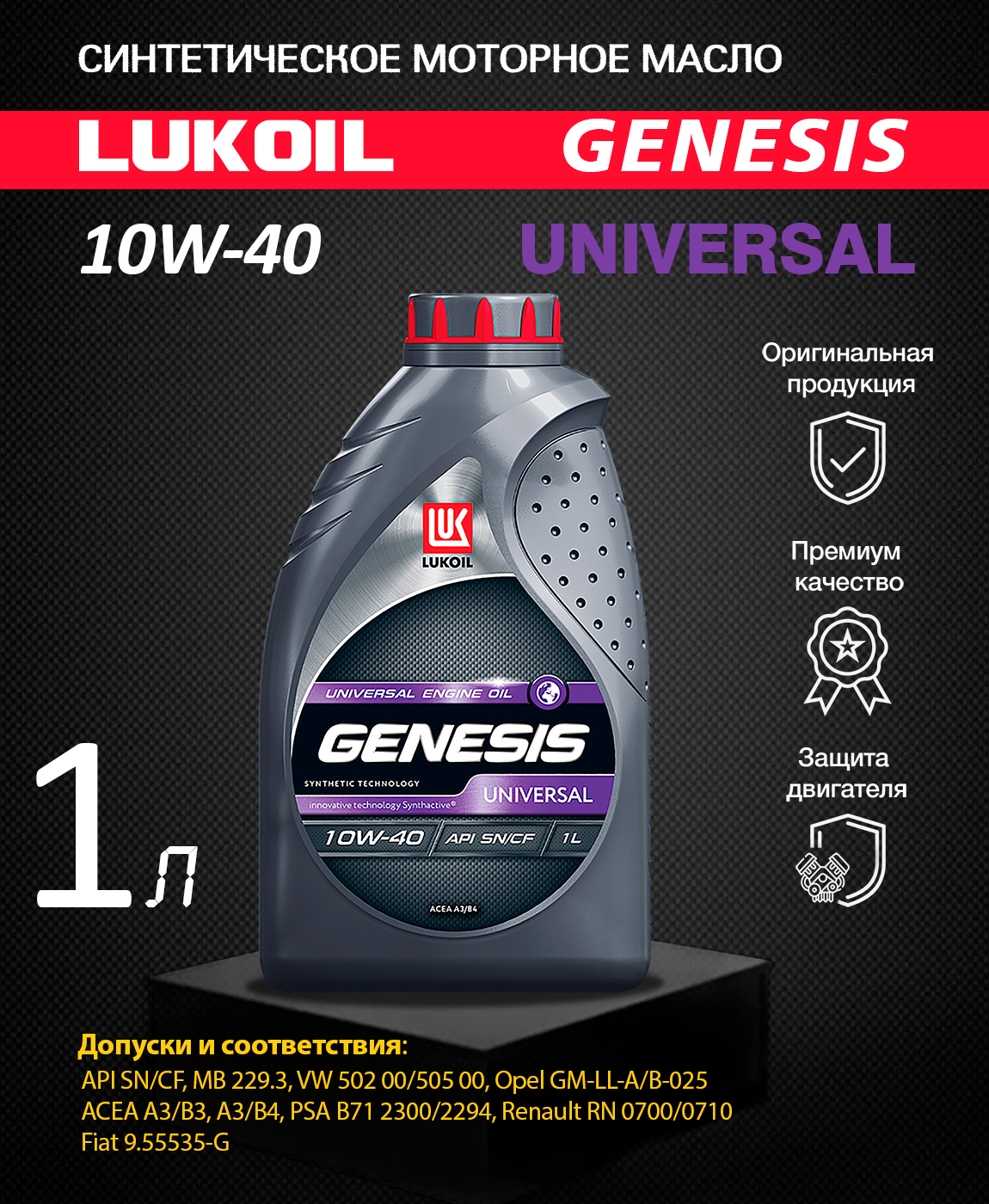 LUKOIL Лукойл Genesis Universal 10w-40 П/С (1л) Api Sn Acea A3/B4 Api Cf Mb 229.3 Psa B71 2300/2294 Vw 502