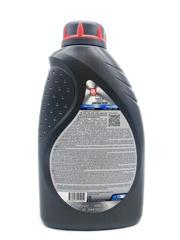 LUKOIL 3150660 Масло моторное 0W40 ЛУКОЙЛ 1л синтетика GENESIS ARMORTECH SN/CF, A3/B4 ()