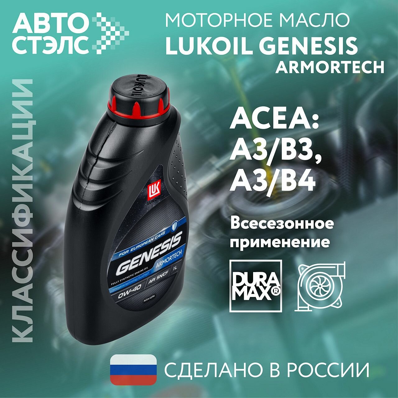 масло лукойл 0w40 genesis armortech api sn acea a3/b3 a3/b4 4л син