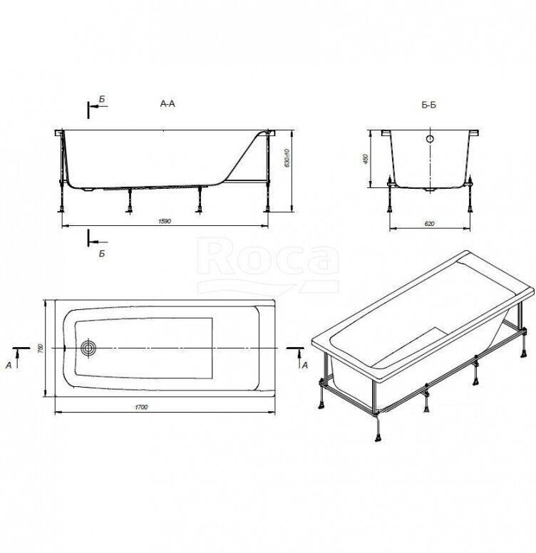 Ванна Roca ELBA 170х75см, без монтажного комплекта (248507000)