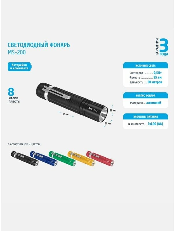 Фонарь светодиодный «Фотон» MS-200 интересное: