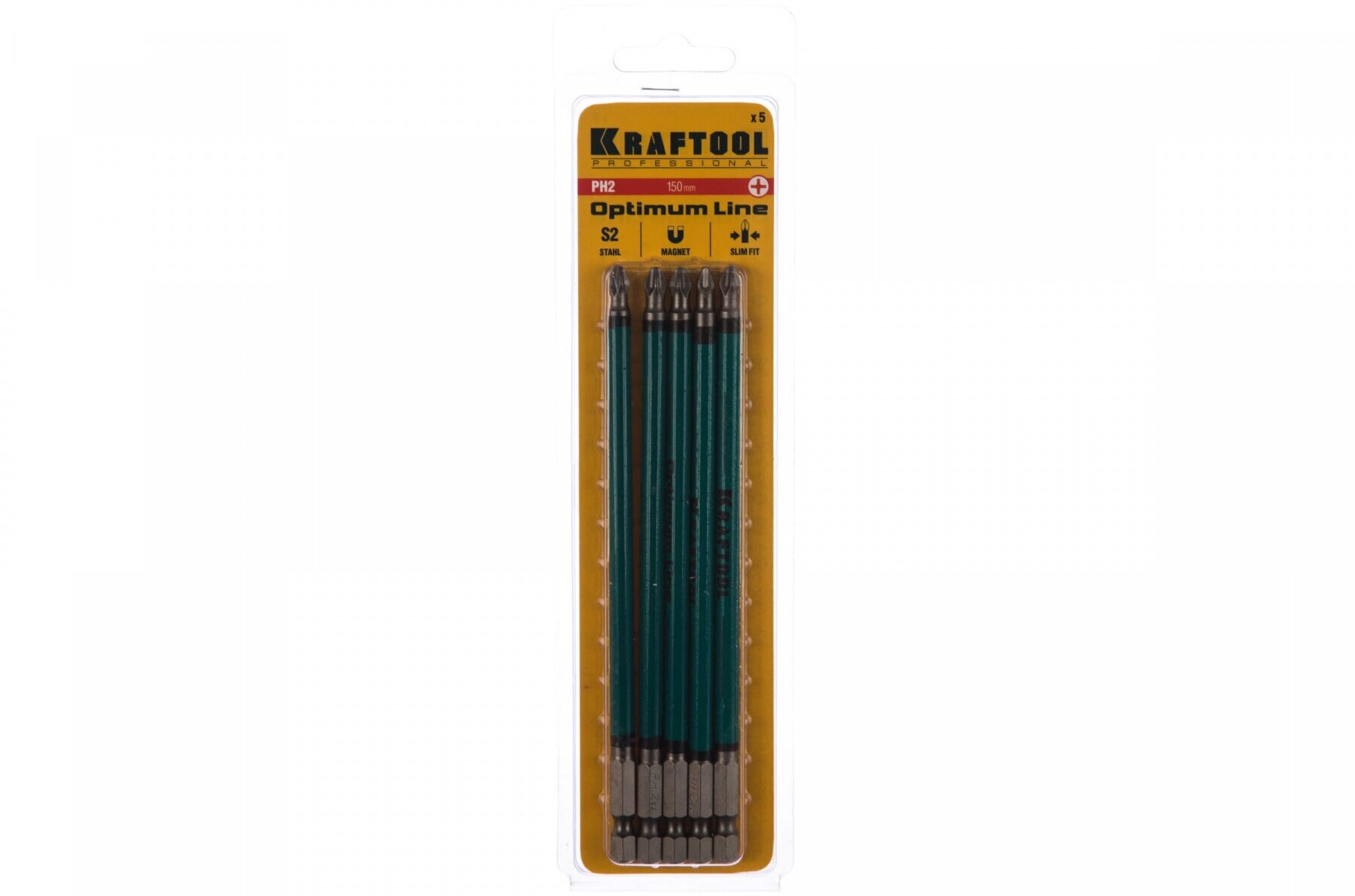 Биты KRAFTOOL Optimum Line, PH2, 150 мм, тип хвостовика E 1/4", 5 шт в блистере