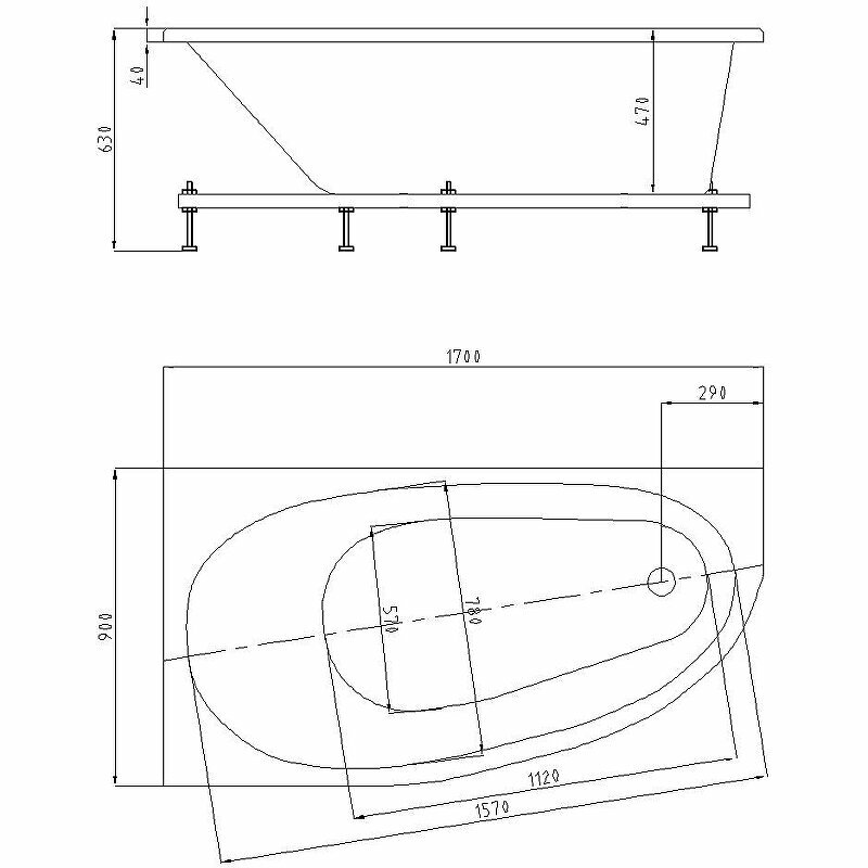 Акриловая ванна Aquatek Дива 170х90 DIV170-0000002 левая, без гидромассажа, без фронтального экрана, без каркаса