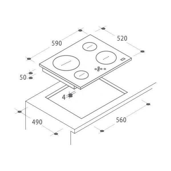 | Размеры конфорок | ближняя левая зона нагрева 15.5 см, дальняя левая зона нагрева 13-22 см, дальняя правая зона нагрева 19 см, ближняя правая зона нагрева 15.5 см |