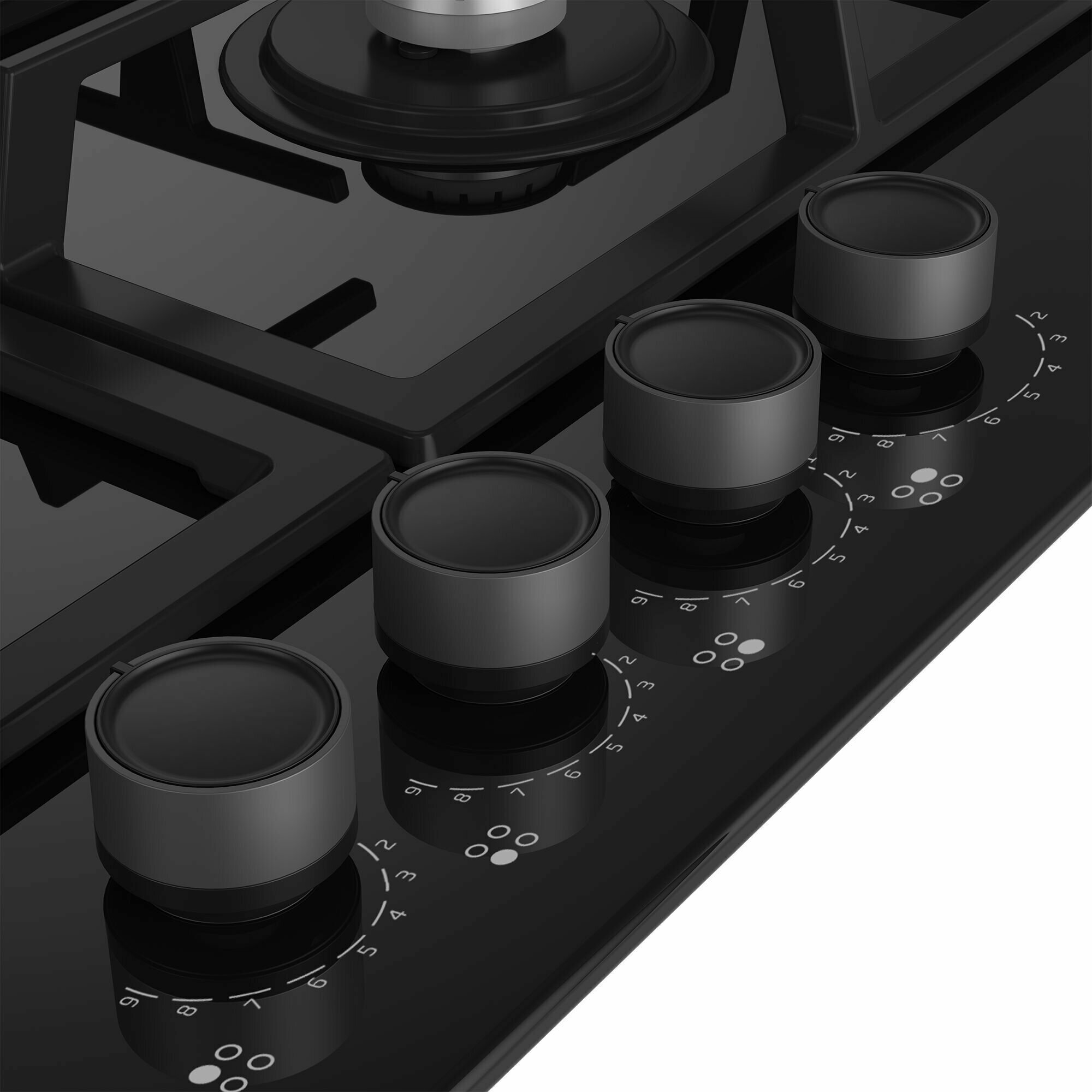 | Плюсы: | Прочное стекло, 4 газовые комфорки разной мощности, газ контроль, электроподжиг |